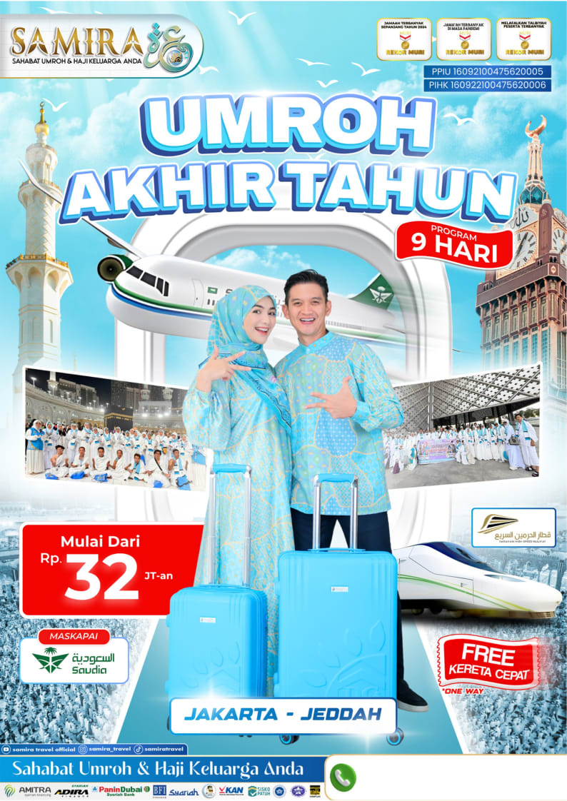 Temukan program perjalanan ibadah terbaik Anda bersama Samira Travel. Kami menyediakan pilihan Haji Khusus, Haji Furoda, dan Umroh dengan berbagai maskapai dan lama perjalanan. Lihat brosur lengkap di bawah ini, yang dikelompokkan berdasarkan kota keberangkatan utama di Indonesia.